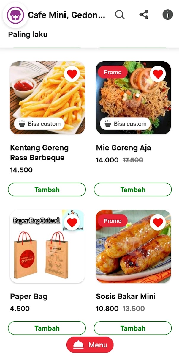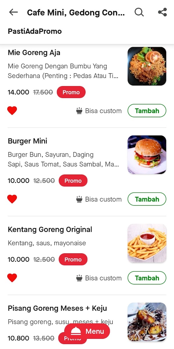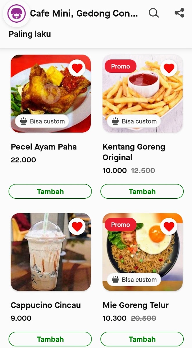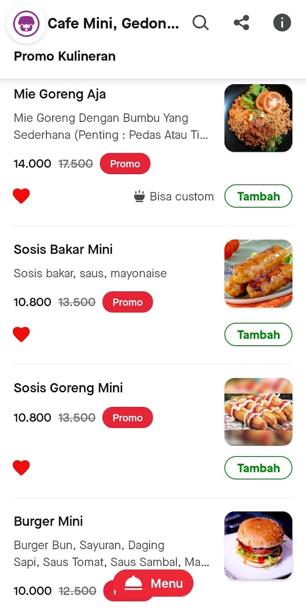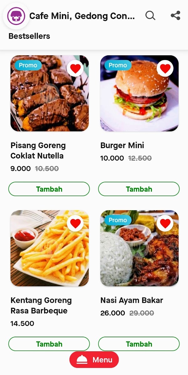 Cafe Mini, Gedong Condet is a cozy diner tucked away on Jl. Kencana No.35, offering a delightful menu perfect for those seeking tasty yet affordable bites. This local gem shines with its variety of snacks and beverages, making it an inviting spot for both quick treats and casual meals. Highlights include their rich, moist brownies that maintain freshness even after days, complemented perfectly by creamy milkshakes that customers rave about.